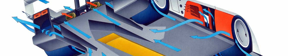 An important part of the air that flowed between these wheels will be channeled, in the two cars, to cool the radiators and heat exchangers. The hot air outlets are also carried out in a similar way by fences in the lateral and upper surfaces of the sidepods.